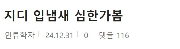 지디가 말하자 연예인들의 반응이… 1월 1, 2025 작성자: comupan 그래도 이건 너무 억까 아닌가 ㅠㅠㅠ 댓글 남기기 응답 취소댓글이름 이메일 웹사이트 다음 번 댓글 작성을 위해 이 브라우저에 이름, 이메일, 그리고 웹사이트를 저장합니다. Δ