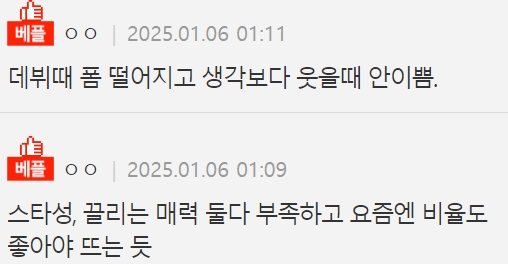 장원영 급인데 왜 안뜨는지 모르겠다는 걸그룹 멤버의 정체 1월 6, 2025 작성자: comupan 댓글 남기기 응답 취소댓글이름 이메일 웹사이트 다음 번 댓글 작성을 위해 이 브라우저에 이름, 이메일, 그리고 웹사이트를 저장합니다. Δ