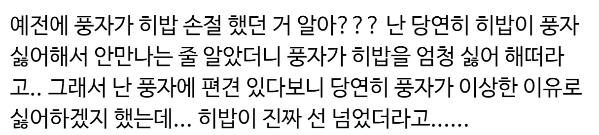 풍자가 히밥을 손절 친 이유 ㄷㄷ