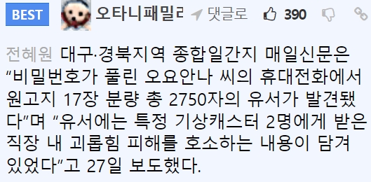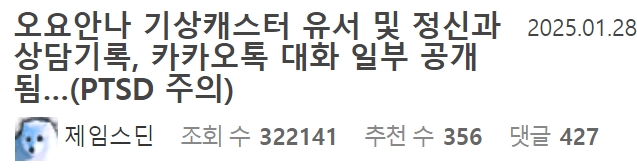 오요안나 새로 추가 공개된 카톡 내용 1월 31, 2025 작성자: comupan 댓글 남기기 응답 취소댓글이름 이메일 웹사이트 다음 번 댓글 작성을 위해 이 브라우저에 이름, 이메일, 그리고 웹사이트를 저장합니다. Δ