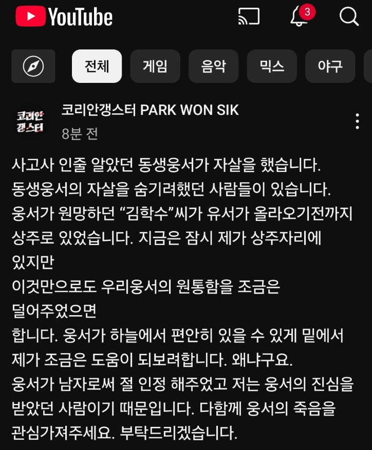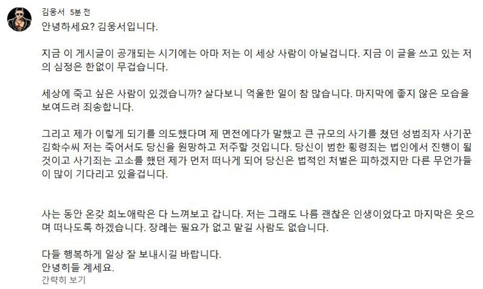 헬스 유튜버 김웅서가 갑자기 세상을 떠난 이유 ㄷㄷ