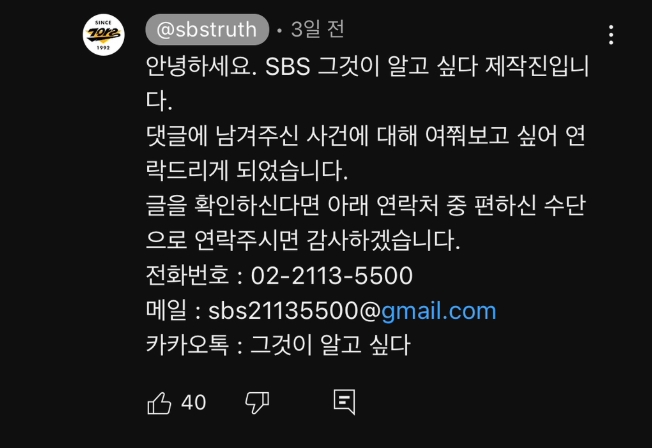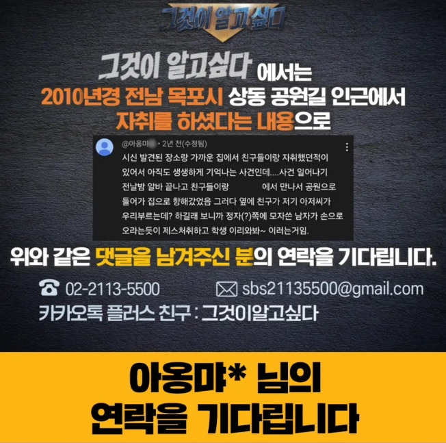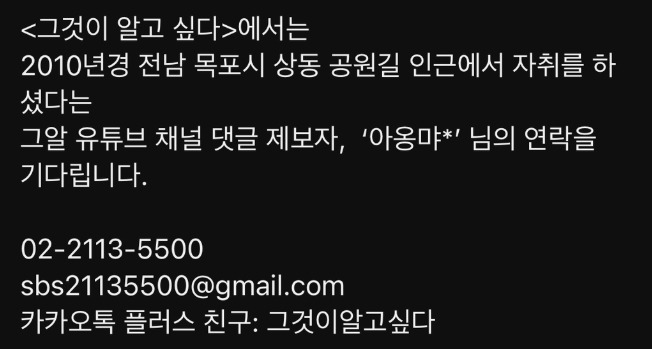 ‘그것이 알고싶다’ 제작진이 급하게 찾는 중이라는 댓글 작성자