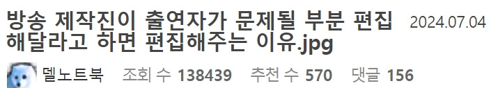 PD한테 편집해달라고 했는데 그냥 내보내 결국 나락간 유명 걸그룹 멤버 2월 12, 2025 작성자: comupan 댓글 남기기 응답 취소댓글이름 이메일 웹사이트 다음 번 댓글 작성을 위해 이 브라우저에 이름, 이메일, 그리고 웹사이트를 저장합니다. Δ