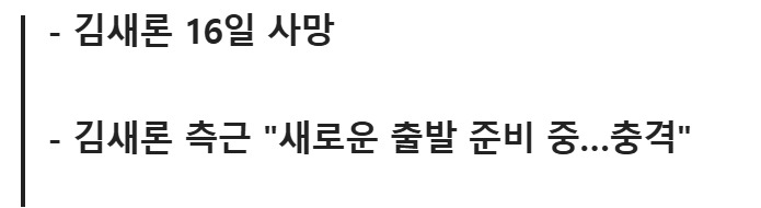 김새론이 최근까지만 해도 지인들에게 전했던 말…. 2월 16, 2025 작성자: comupan 댓글 남기기 응답 취소댓글이름 이메일 웹사이트 다음 번 댓글 작성을 위해 이 브라우저에 이름, 이메일, 그리고 웹사이트를 저장합니다. Δ