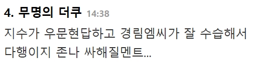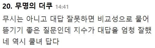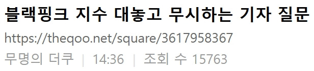 블랙핑크 지수에게 대놓고 무시하는 발언하며 질문한 기자에 대한 지수의 대응 ㄷㄷ 2월 18, 2025 작성자: comupan 댓글 남기기 응답 취소댓글이름 이메일 웹사이트 다음 번 댓글 작성을 위해 이 브라우저에 이름, 이메일, 그리고 웹사이트를 저장합니다. Δ