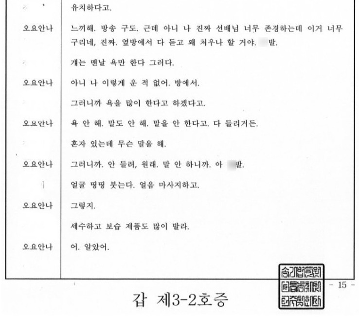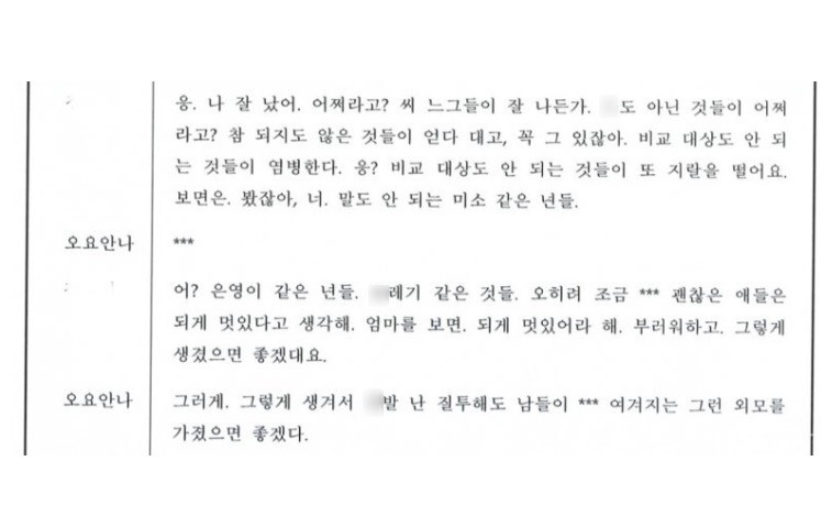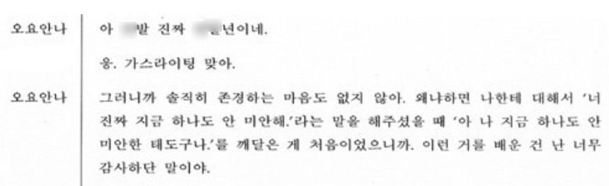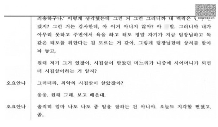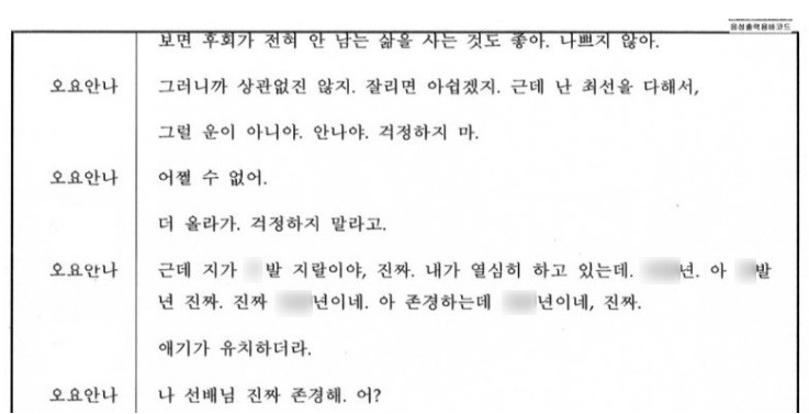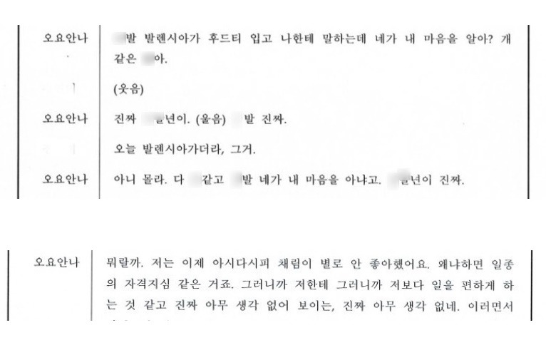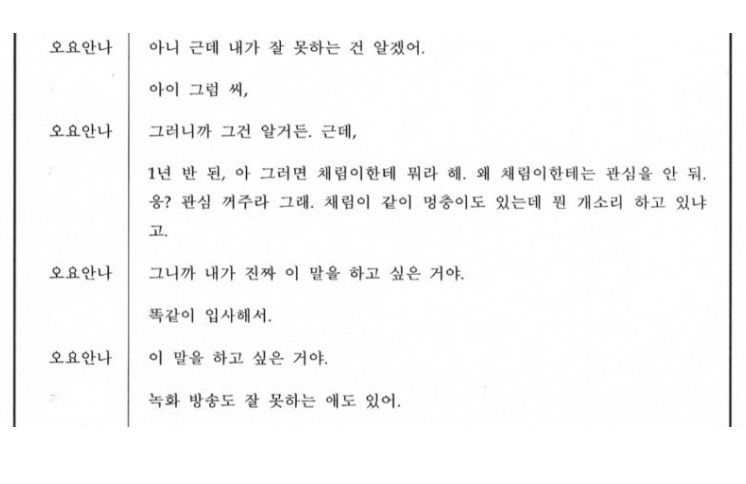 커뮤니티에서 공개된 오요안나 대화 녹음 내용