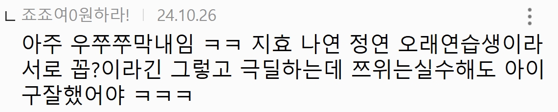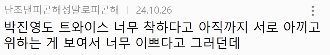 트와이스 실제 관계가 보이는 술자리 대화 2월 25, 2025 작성자: comupan 댓글 남기기 응답 취소댓글이름 이메일 웹사이트 다음 번 댓글 작성을 위해 이 브라우저에 이름, 이메일, 그리고 웹사이트를 저장합니다. Δ