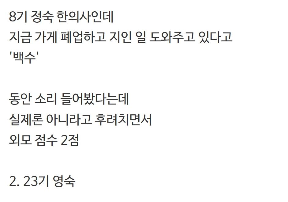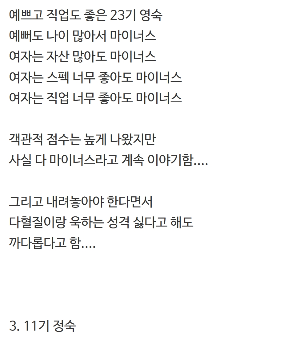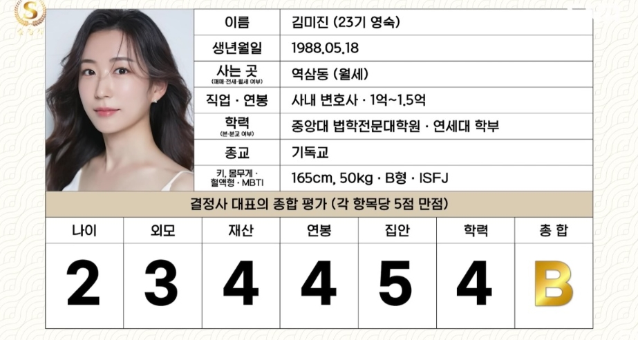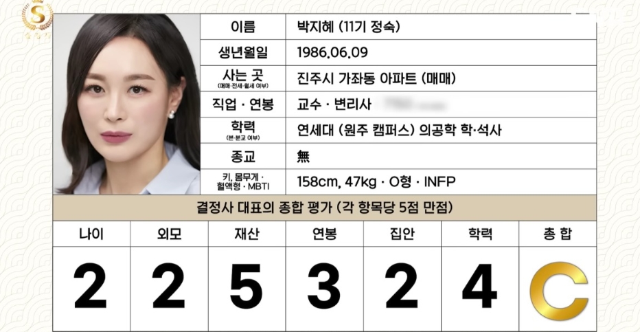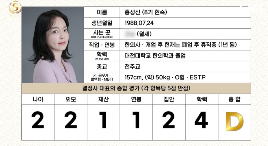결정사에서 매긴 <나는솔로> 전문직 여출의 평가 등급