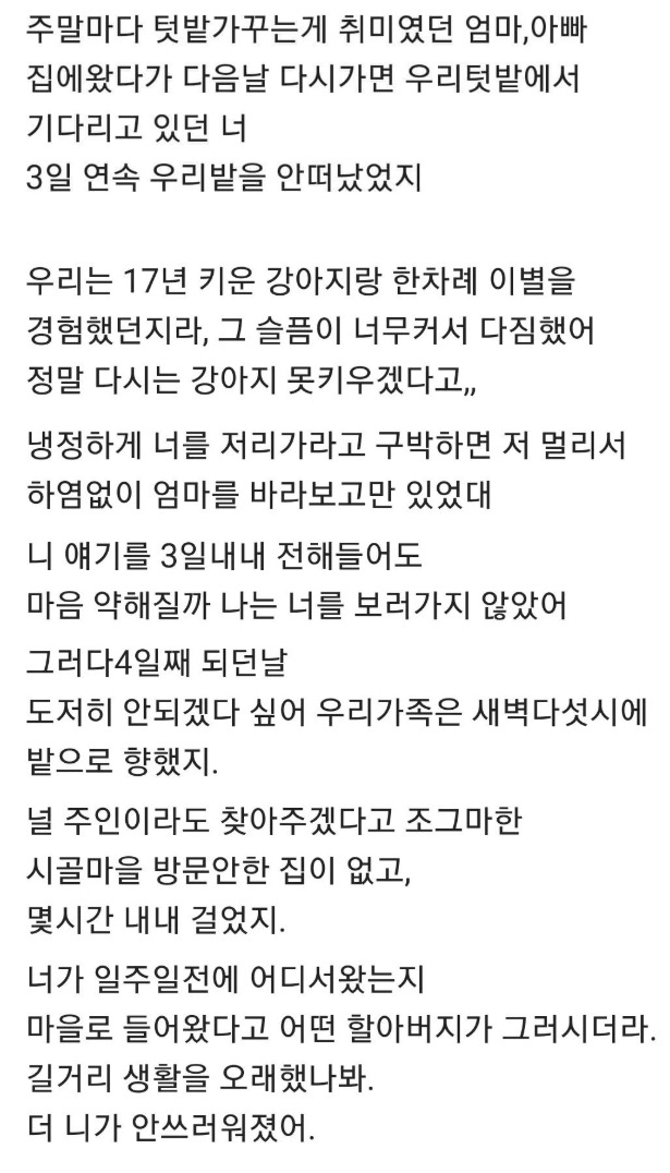 부모님 텃밭에서 갑자기 가족이 된 강아지