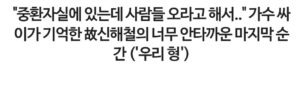 싸이가 평생 기억에 남는다는 故신해철의 마지막 순간 5월 21, 2025 작성자: comupan 댓글 남기기 응답 취소댓글이름 이메일 웹사이트 다음 번 댓글 작성을 위해 이 브라우저에 이름, 이메일, 그리고 웹사이트를 저장합니다. Δ