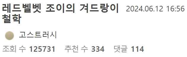 레드벨벳 조이가 생각하는 겨드랑이 철학 5월 26, 2025 작성자: comupan 댓글 남기기 응답 취소댓글이름 이메일 웹사이트 다음 번 댓글 작성을 위해 이 브라우저에 이름, 이메일, 그리고 웹사이트를 저장합니다. Δ