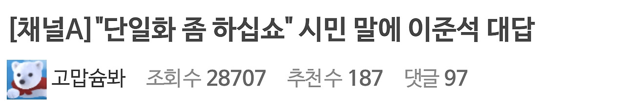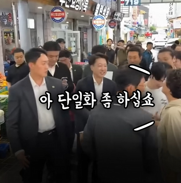 “단일화 좀 하십쇼!!” 라고 말하는 시민의 말에 이준석 대답