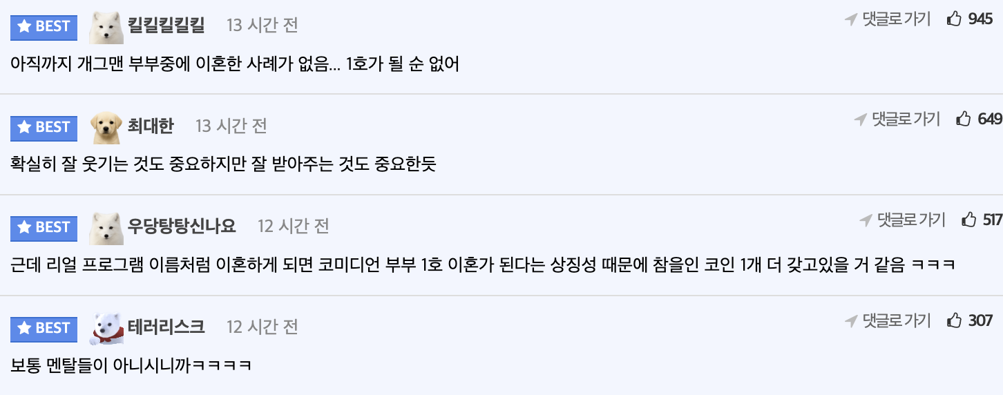 개그맨 부부중 이혼한 커플이 없는 이유