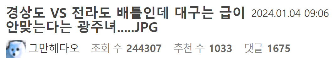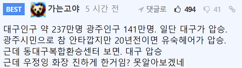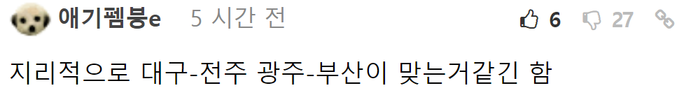 광주 출신 아이돌의 대구에 대한 논란 발언 6월 2, 2025 작성자: comupan 댓글 남기기 응답 취소댓글이름 이메일 웹사이트 다음 번 댓글 작성을 위해 이 브라우저에 이름, 이메일, 그리고 웹사이트를 저장합니다. Δ