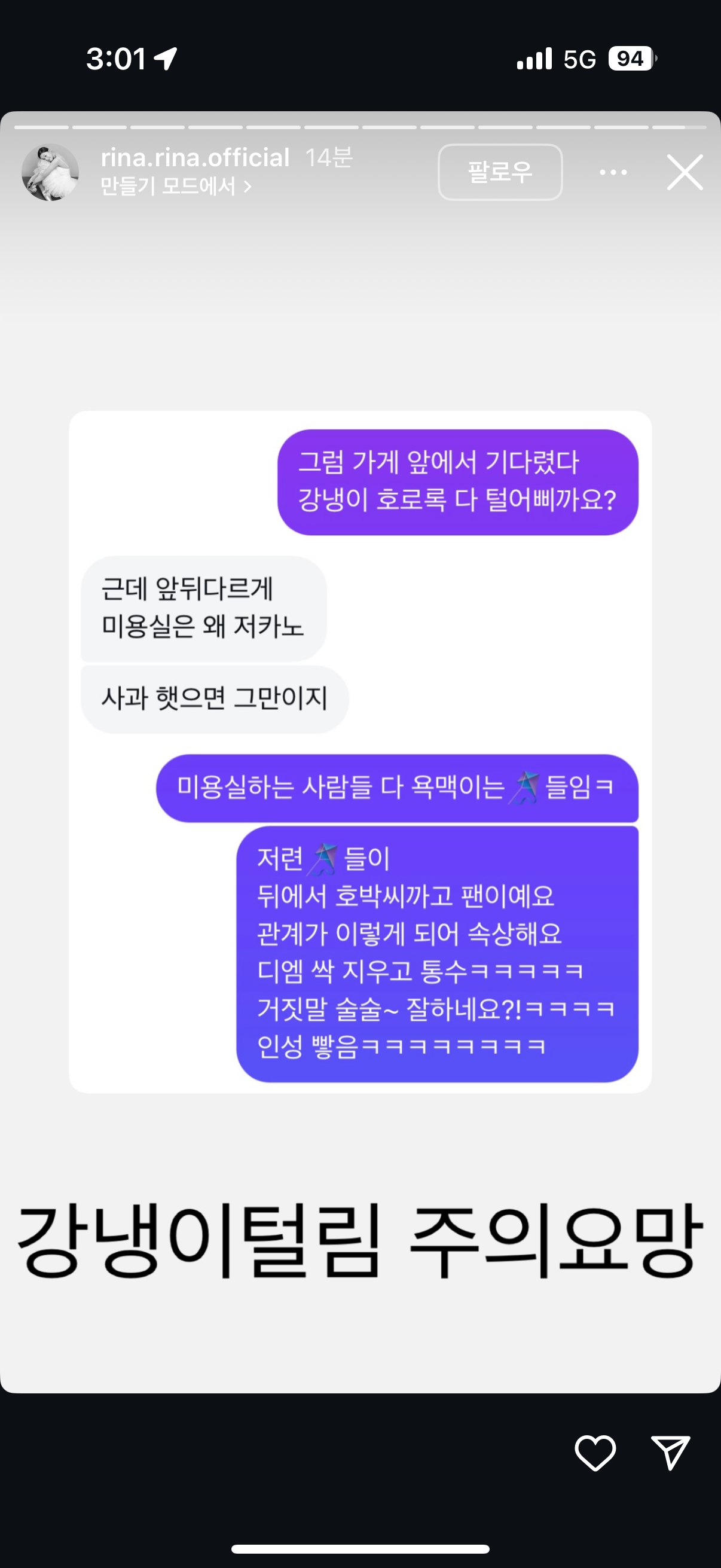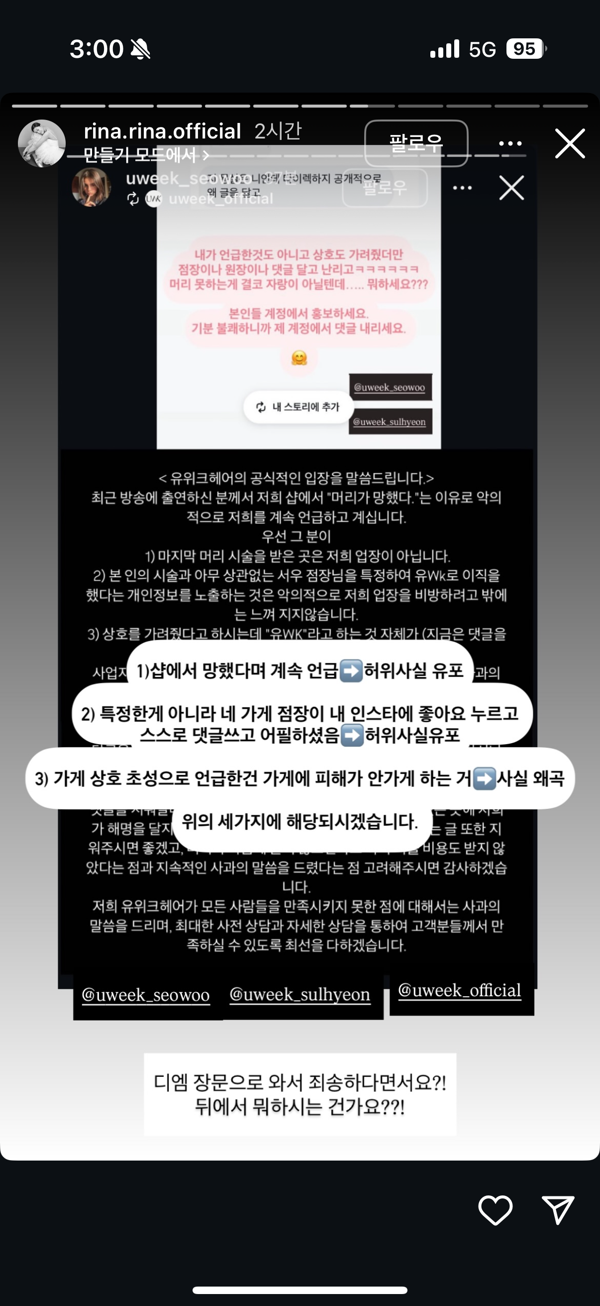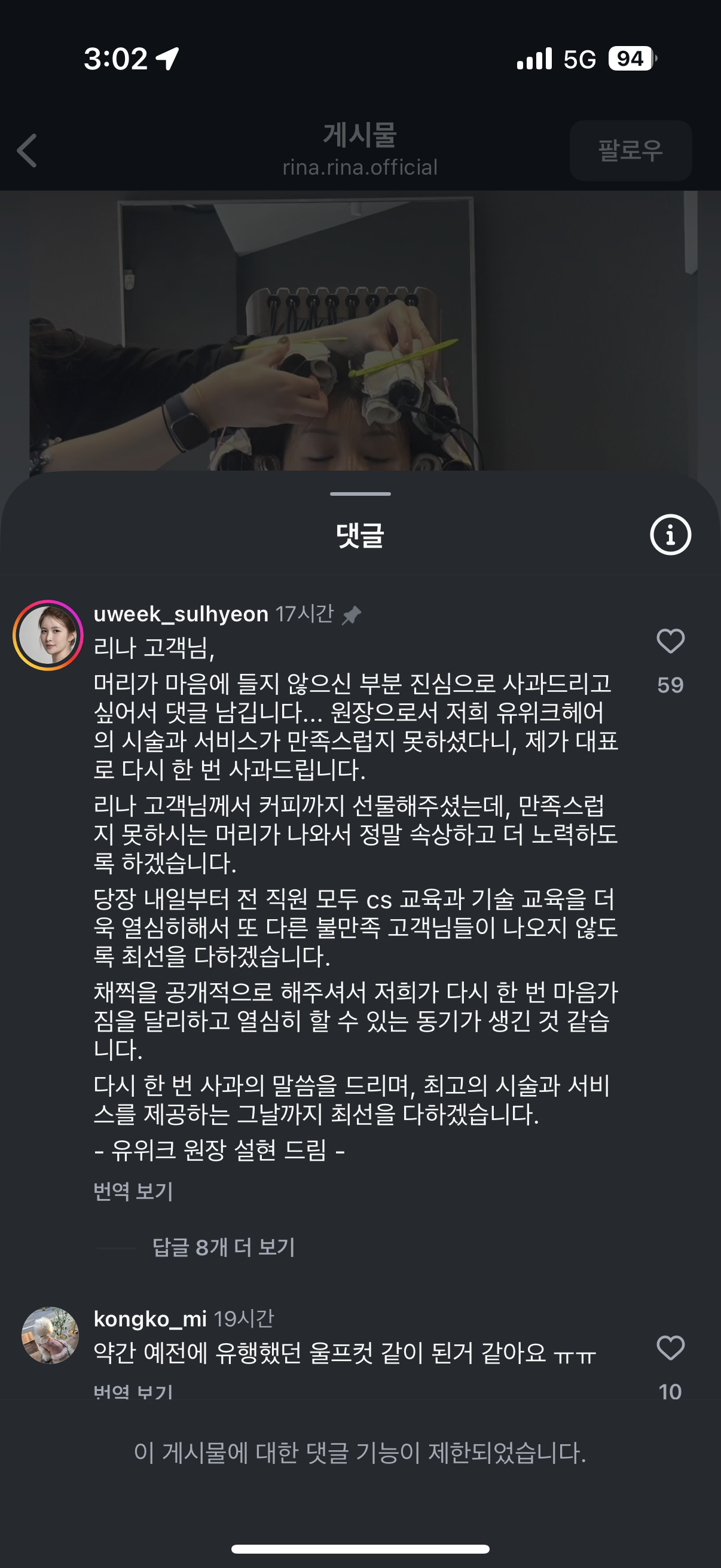 A 미용실 측이 영숙 인스타에 댓글 달고