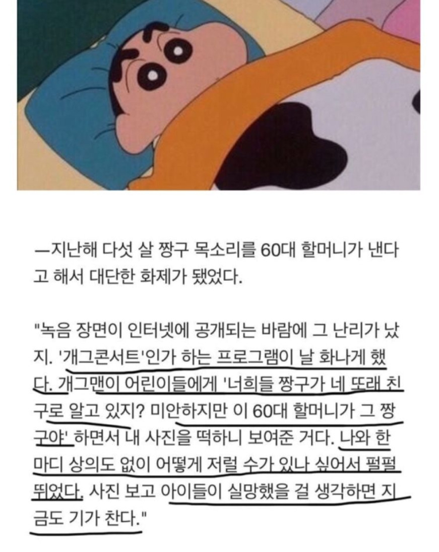 짱구 박영남 성우가 진심으로 분노한 ‘개그콘서트’ 사건